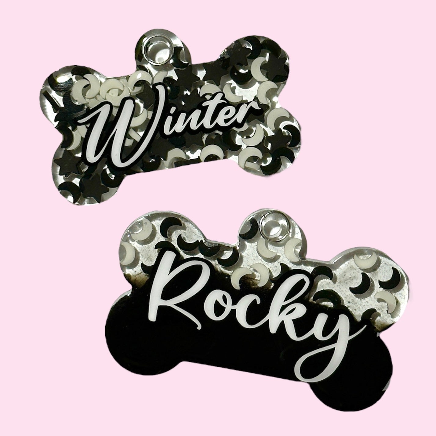 All tags are hand made by me, no two tags will ever be the same, each one is different. I work hard to prevent any imperfections but sometimes the tags can contain small air bubbles or have irregular edges.
